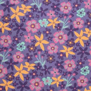 Tela de Algodón Estampado Floral Multicolor sobre Fondo Lila