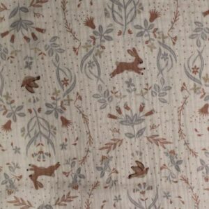 Tela de doble gasa con animalitos en tonos suaves – Algodón ideal para bebé y ropa infantil