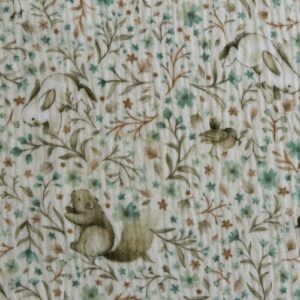 Tela de doble gasa con animalitos y hojas – Algodón 100% ideal para bebé y ropa infantil