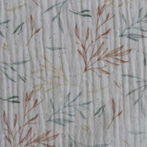 Tela de doble gasa estampada con ramilletes en tonos verde, teja y amarillo – Algodón 100% ideal bebé