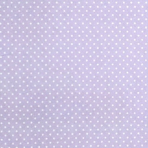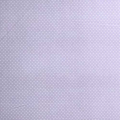 Tela de algodón con fondo lila muy claro y topitos blancos. El topito tiene un tamaño de 2 mm aproximadamente.