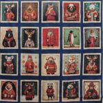 Panel de Tela con 20 Cuadros de Animales para Proyectos Navideños – Diseño Infantil sobre Fondo Azul