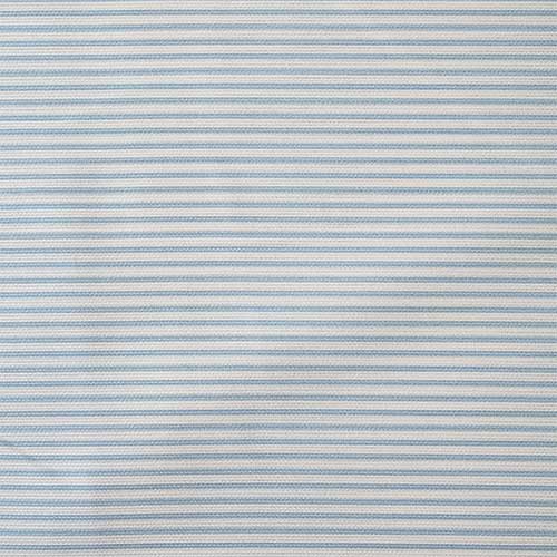 Tela de pique de canutillo con fondo blanco sobre el que se presentan rayas azules. Las rayas miden aproximadamente 3 mm. Las rayas van paralelas al hilo de la tela.