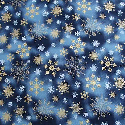 Tela Algodón navidad copos de nieve dorados sobre fondo azul