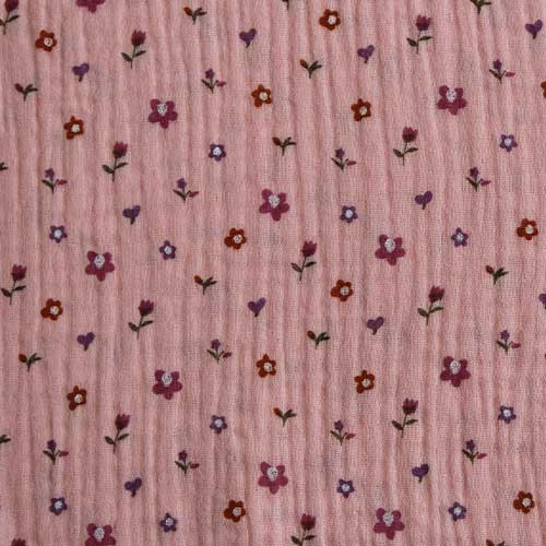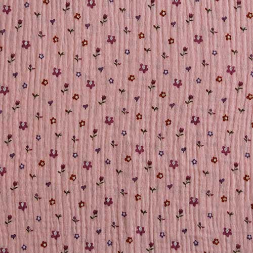 Tela de doble gasa rosa con florecitas – Algodón 100% ideal para bebé y ropa infantil