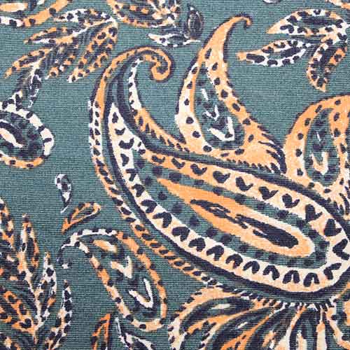 Tela de punto de invierno con estampado de cachemir – Verde esmeralda y tonos naranjas
