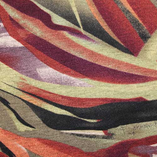 Este tejido de punto presenta un estampado abstracto donde los colores se entremezclan de forma armoniosa, sin líneas definidas, creando un efecto visual elegante y contemporáneo. Su textura suave y ligeramente elástica la convierte en una opción perfecta para confeccionar prendas cómodas, con buena caída y agradable tacto.