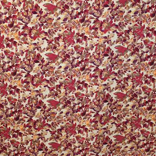 Esta tela destaca por su fondo beige oscurito, sobre el que se despliega un diseño artístico de flores y hojas en tonos granate y ocre, con un estilo desenfadado y sin contornos definidos que aporta un aire natural y moderno. Los motivos florales presentan un tamaño aproximado de 3,5 x 3 cm, creando un estampado equilibrado y muy favorecedor.