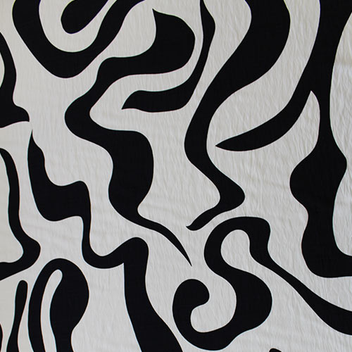 Tela de viscosa estampada en blanco roto y negro – Diseño abstracto elegante