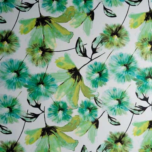 Esta tela presenta un fondo blanco adornado con grandes flores en tonos verdes con un ligero matiz amarillo o verde lima, creando un diseño encantador y llamativo. Además de las llamativas flores, también se incluyen molinillos en el estampado. El diseño en su conjunto es de gran tamaño, con las figuras aproximadamente midiendo 12 x 13 cm cada una. Ideal para proyectos de costura que buscan añadir un toque de frescura y vitalidad a cualquier creación