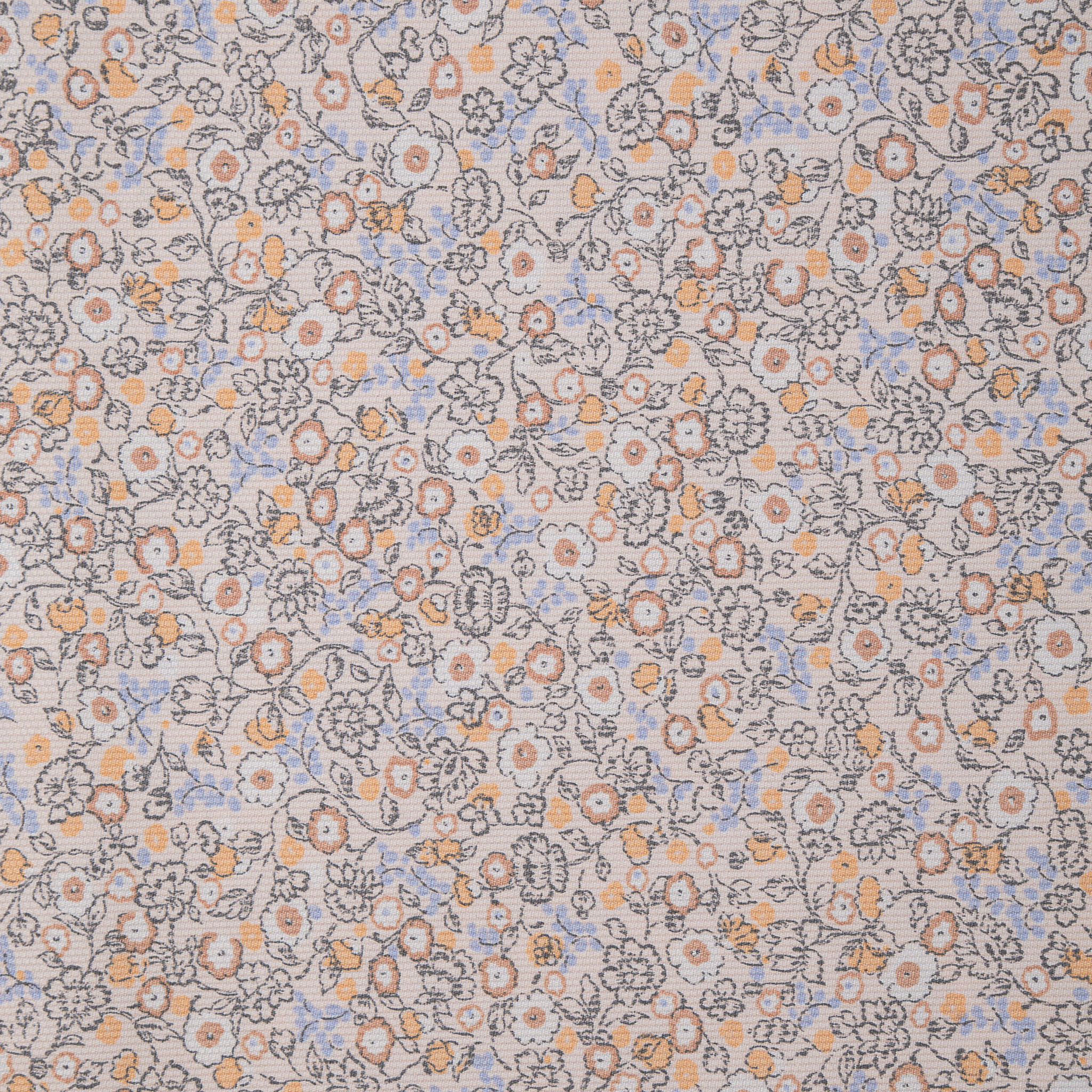 Explora la belleza de esta tela de piqué de canutillo con un cautivador estampado de florecitas que se entrelazan de manera armoniosa. Cada flor, en tonos suaves como beige, azul y marrón clarito/naranja, presenta una delicadeza única, con la flor más grande midiendo aproximadamente 1 cm. Esta tela es la elección ideal para proyectos que buscan incorporar un toque de naturalidad y frescura. Deja que este encantador diseño inspire tus creaciones, ya sea para prendas de vestir primaverales, accesorios encantadores o proyectos de decoración hogareña. Con esta tela, tus ideas florecerán con estilo y elegancia.