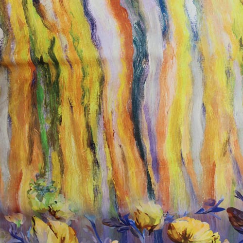 Si buscas una tela satinada original, con cenefa y llena de color, esta es una opción top dentro del mundo de las telas online.