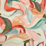🎨 Paleta de colores suaves: tonos rosa pastel, rosa intenso, azul turquesa, beige y diversas tonalidades de verde.
