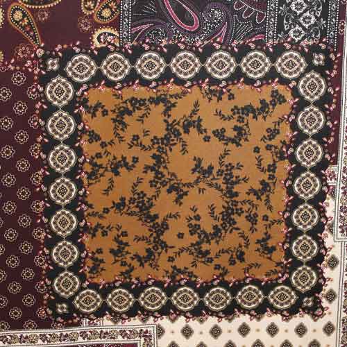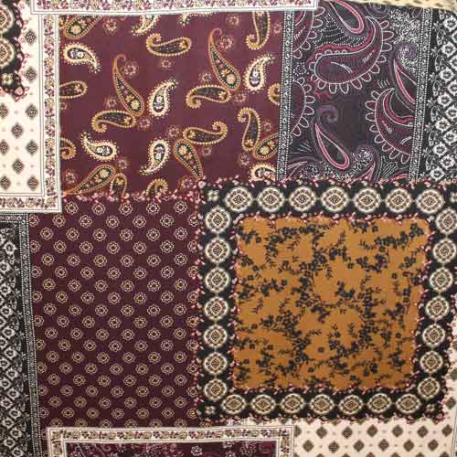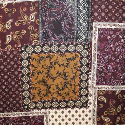 Una viscosa de invierno llena de personalidad: tonos granates y marrones súper tendencia, formas irregulares tipo cuadros y detalles cachemir, flores y rombos que hacen de esta tela una auténtica joyita para tus proyectos de costura.