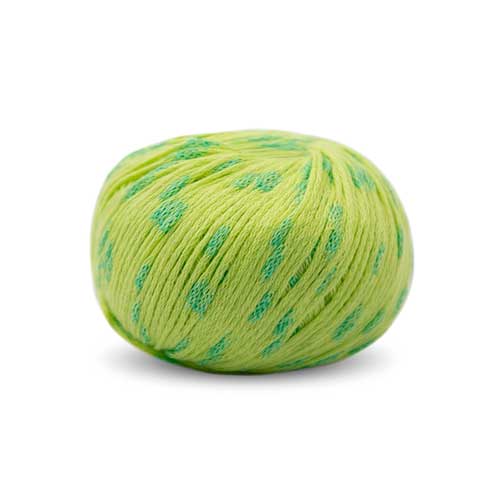 Hilo zahara se trata de un hilo de una calidad muy divertida que destaca por su colorido enérgico y vibrante, sobre el que se dibujan discretas motas ligeramente más oscuras que el tono base.